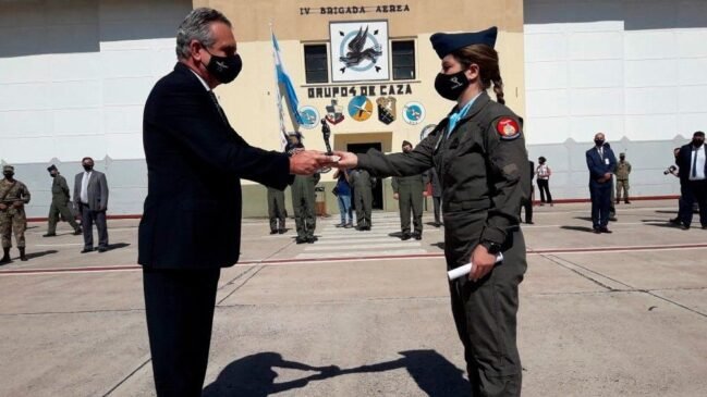 La particularidad es que dentro de los pilotos de IA-63 Pampa se encuentra la teniente Sofía María Vier (26), que ha logrado convertirse en la primera mujer piloto de caza de la Argentina.
