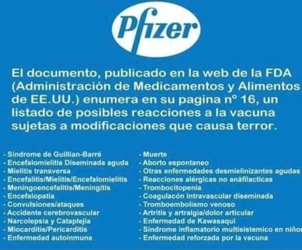 El documento publicado en la web de la FDA (Administración de Medicamentos y alimentos de EE.UU) enumeró en su pagina nº16, un listado de posibles reacciones a la vacuna sujetas a modificaciones que causa terror.