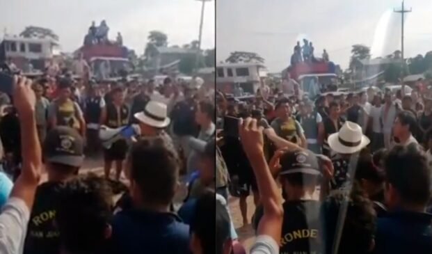 En un video al que tuvo acceso Canal N, se aprecia a los policías en la plaza de armas de Codo de Pozuzo rodeados por ronderos y decenas de pobladores, quienes pretenderían hacer justicia por sus propias manos.