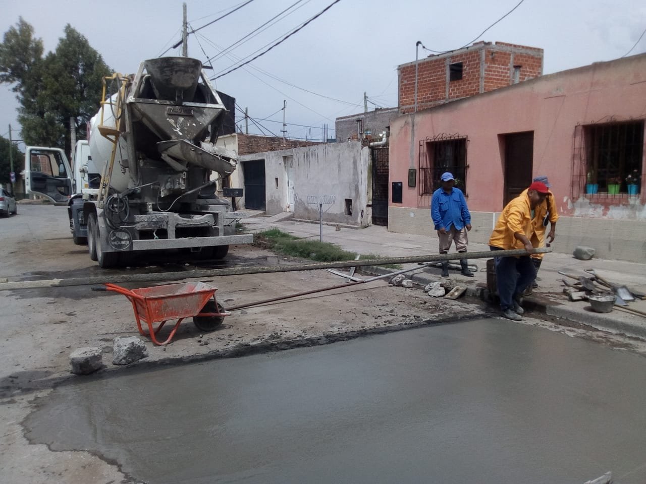 La Municipalidad inició el hormigonado en la intersección de las avenidas Ecuador y Las Américas de villa Mónica ejecutado con hormigón elaborado en Planta, traslado de en Camiones Mixer propios, equipos y mano de obra municipal.