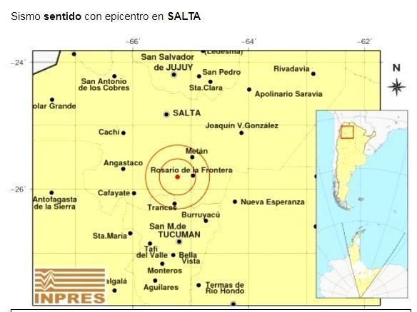 Esta mañana, pasadas las 6.20, se registró un temblor en Rosario de la Frontera de 3º en la escala de Richter. Tuvo epicentro a 112 kilómetros al sur de la ciudad de Salta.