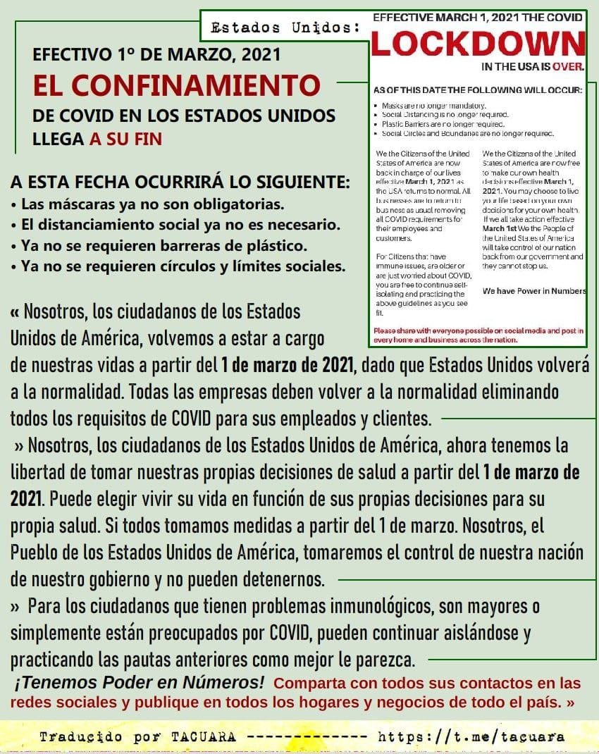 En una publicación que tomó estado viral, los ciudadanos norteamericanos tomaron la firme decisión de dar fin al confinamiento por el COVID-19.