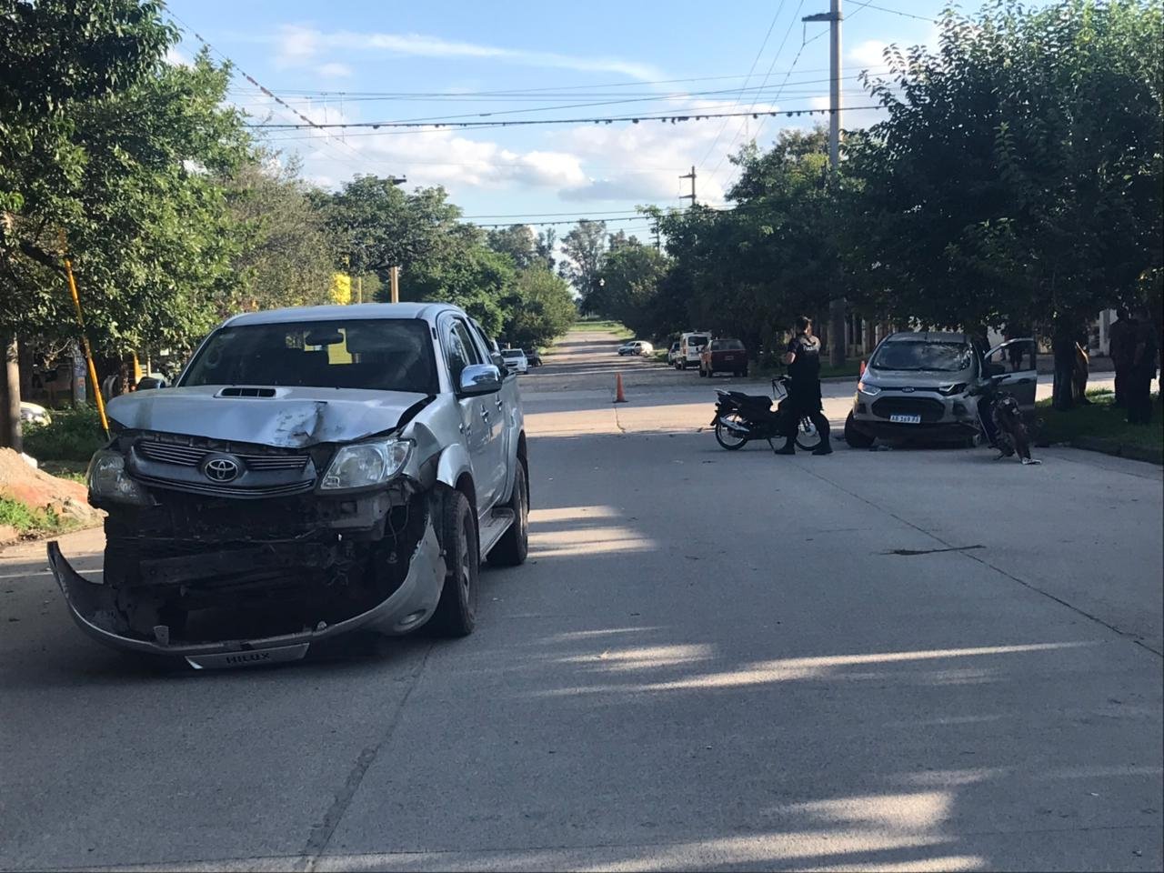 Una camioneta que circulaba por calle Tucumán, giró sobre calle Almirante Brown e impactó contra un automóvil que también hacía la misma maniobra, pero en el otro sentido, de acuerdo a los primeros testimonios que se conocieron sobre el accidente en cadena que tuvo lugar esta tarde en barrio San Martín.