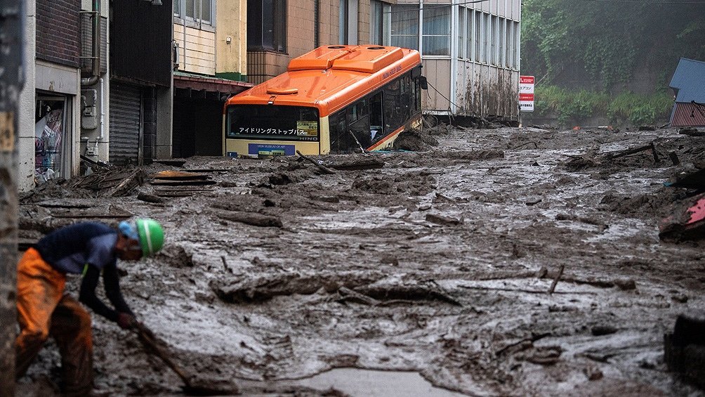 Atami, una ciudad balnearia en la ladera de una montaña, a unos 90 km al suroeste de Tokio, recibió 313 milímetros de lluvia en 48 horas el viernes y el sábado, en comparación con la media de precipitaciones de 242 en julio de los últimos años.