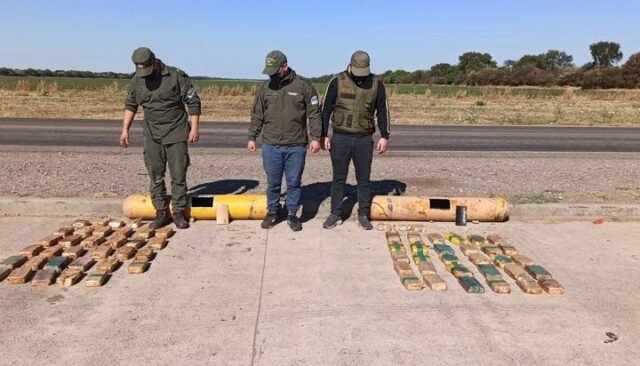 Pasado el mediodía del viernes, personal del puesto fijo que la Gendarmería Nacional tiene sobre el kilómetro 105 de la Ruta Provincial N°5, a la altura de la localidad de General Pizarro, detuvo a la camioneta Ford F-100, cuyo conductor trasladaba dos cilindros de GNC, en cuyo interior se encontraron 65 kilos de cocaína, acondicionados en 33 paquetes. Además, esa tarde, en una serie de allanamientos en la localidad de El Quebrachal, se detuvo a otras tres personas, quienes serían aquellas que viajaban en los vehículos de asistencia.