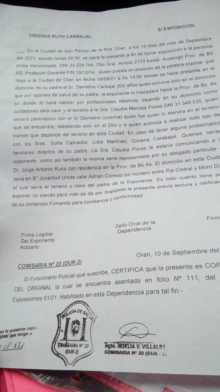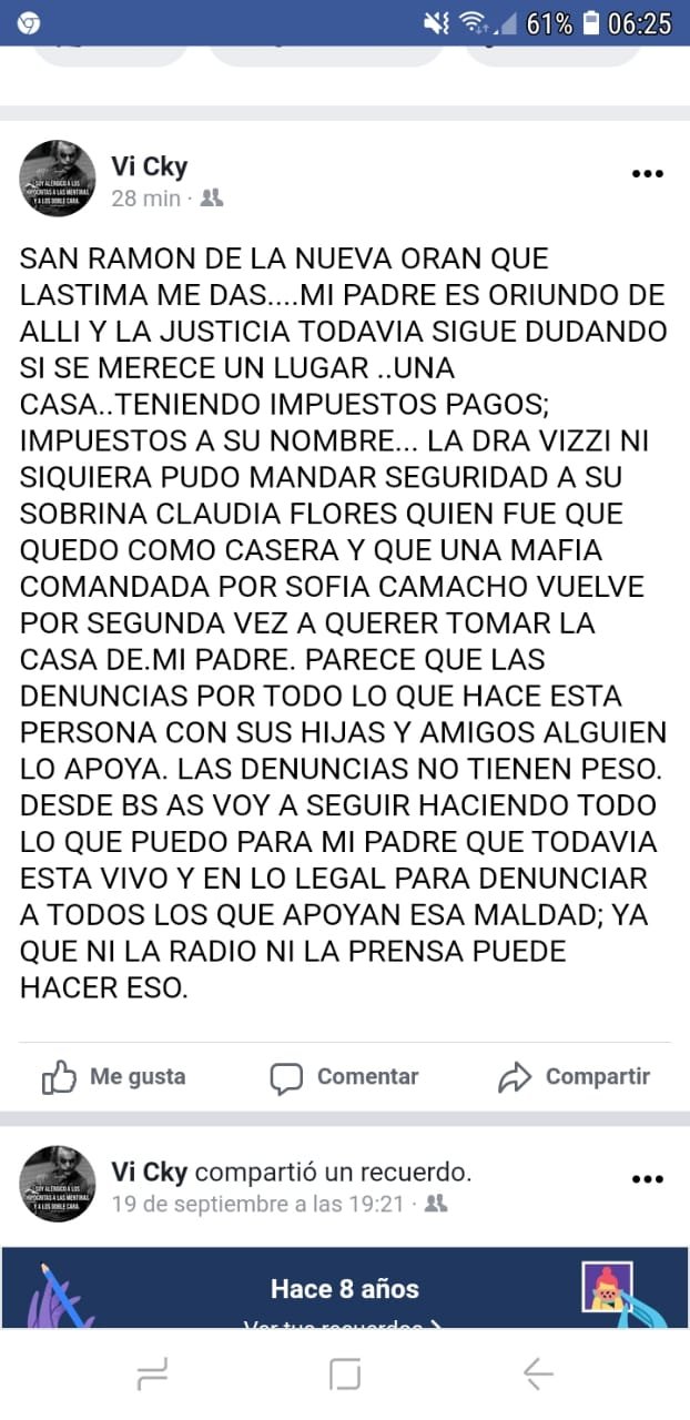 A medida que fueron pasando los días, la mujer encargada de la casa de Indio Carbajal, sufrió un ataque violento por parte de familiares del mismo, dejándola afuera. De esta manera, los familiares usurparon el domicilio de Indio Carabajal, que es lo que denuncia gravemente. “Estamos luchando para recuperar la vivienda de mi padre”, resaltó.