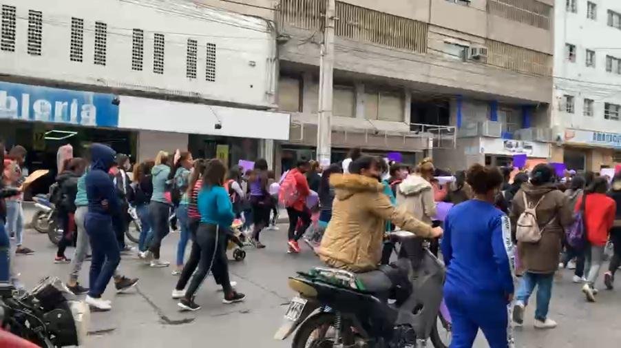 Pasadas las 10 horas, una importante columna de mujeres se desplazó por Av. Jujuy con destino al Centro Cívico Municipal para solicitar una fuente de trabajo genuina, y elevar su voz una vez más para poner fin de los femicidios.