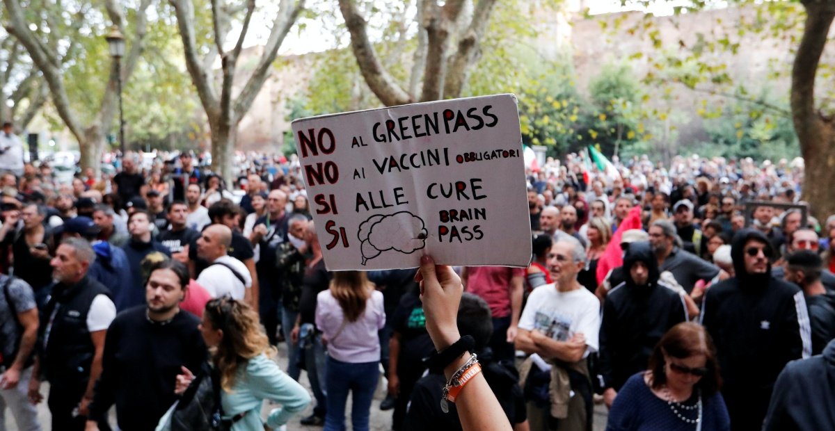 La certificación en Italia, conocida como “Green Pass“, entra en vigor el 15 de octubre y se aplica a los lugares de trabajo públicos y privados. Los manifestantes realizaron por primera vez una protesta ruidosa y autorizada en la “Piazza del Popolo”. Luego, los manifestantes abandonaron la gran plaza y se enfrentaron con la policía mientras se dirigían a través del cercano parque Villa Borghese y luego por Via Veneto en una marcha no autorizada.