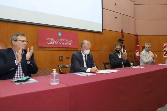 En Casa de Gobierno, el vicegobernador Antonio Marocco, el presidente de Trenes Argentinos Capital Humano Damián Contreras y el vicepresidente de Trenes Argentinos Cargas Martin Gainza firmaron un convenio para poner en valor la Estación de Trenes de San Antonio de los Cobres.