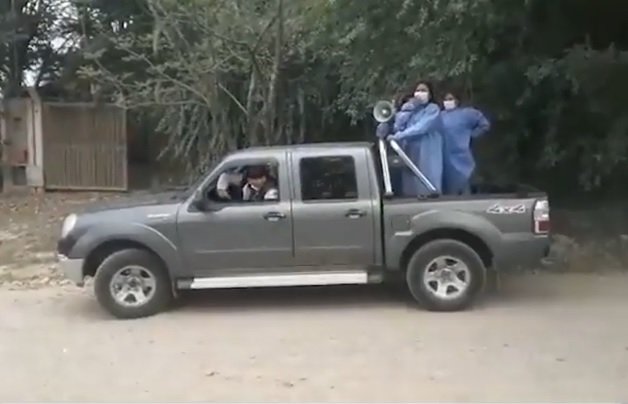 En el video se puede ver como personal de salud recorre las calles y mediante un megáfono llama a los niños a vacunarse.