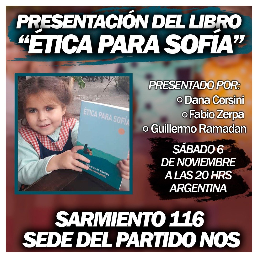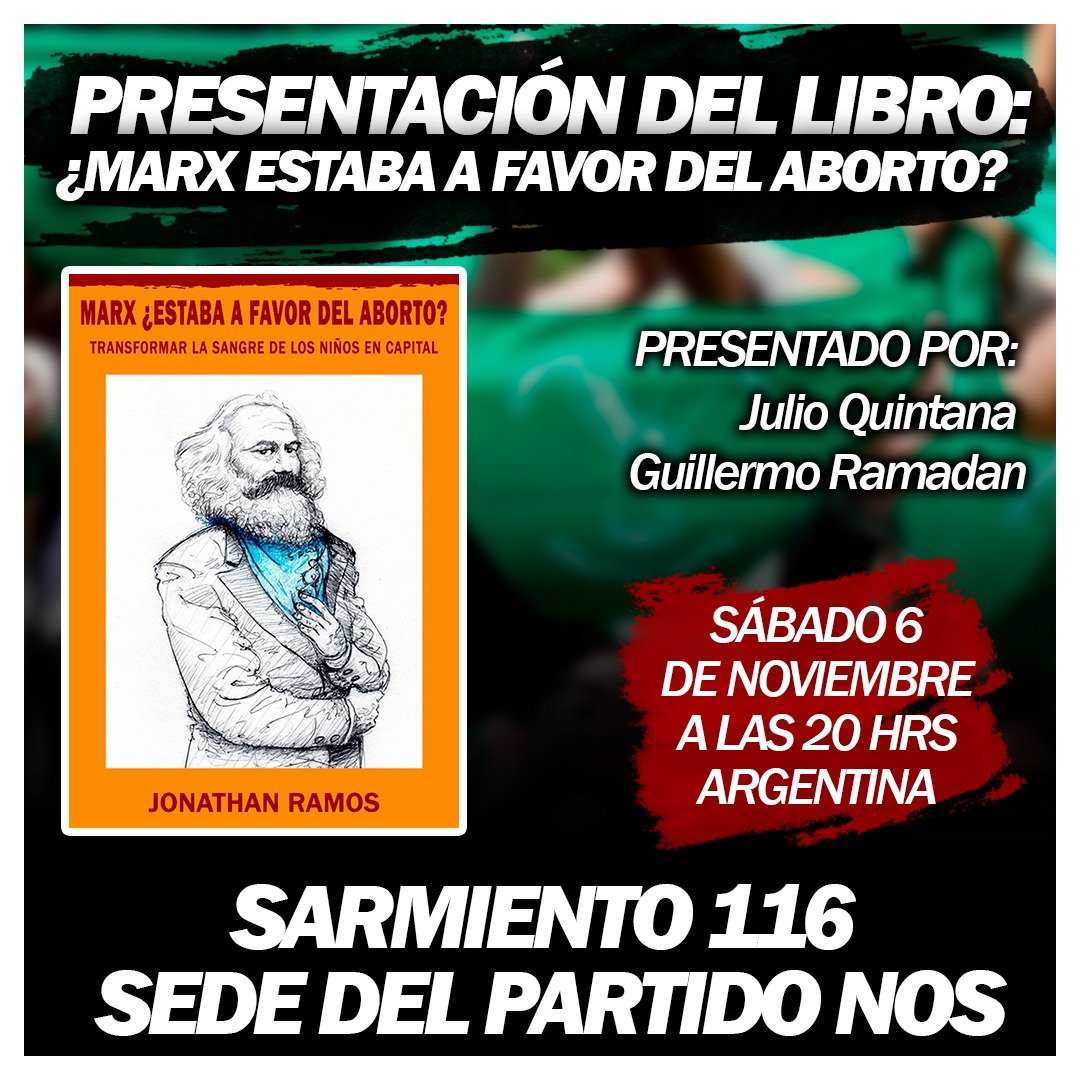 La cita es esta noche a partir de la 20 hs. en la sede NOS , calle Sarmiento116 donde Guillermo Ramadan , Julio Quintana, Fabio Zerpa entre otros presentaran “Ética para Sofía” y “¿Marx estaba a favor del aborto?” en ua velada más que interesante.