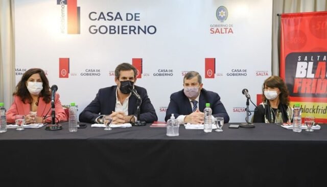 Este viernes, tuvo lugar el lanzamiento oficial del Salta Black Friday en Casa de Gobierno, con la presencia del secretario de Ingresos Públicos del Ministerio de Economía, Diego Dorigato; la jefa de gabinete de la municipalidad Capitalina, Agustina Gallo; el presidente de la Cámara de Comercio e Industria, Daniel Betzel; la gerente Divisional de Banco Macro, Jorgelina Baso y referentes de otras entidades bancarias, junto a autoridades de Cámaras de Comercio del Interior de la Provincia que participaron de manera virtual del encuentro.