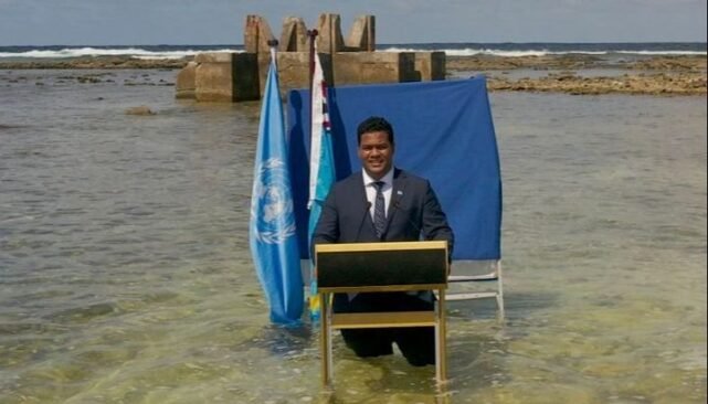 Con el agua hasta las rodillas, en un sitio que años atrás era un terreno seco, Kofe dejó en claro que el drama que hoy enfrenta Tuvalu es solo un presagio de los graves impactos del cambio climático que azotarán cada vez más, aunque en formas diferentes, a muchos otros países del mundo.