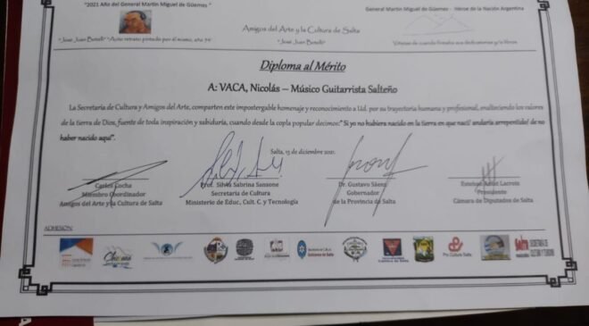 Reconocimiento al Director Artístico del Canal 7, el profesor, músico y guitarrista Nicolás Vaca.