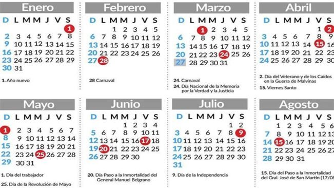 Por otro lado, en cuanto a los fines de semana largo que se designaron durante el año, son en total 4. Uno de ellos fue entre el sábado 26 de febrero y el martes 1 de marzo, mientras que los siguientes serán del viernes 17 al lunes 20 de junio, luego del viernes 7 al lunes 10 de octubre y el último del jueves 8 al domingo 11 de diciembre.
