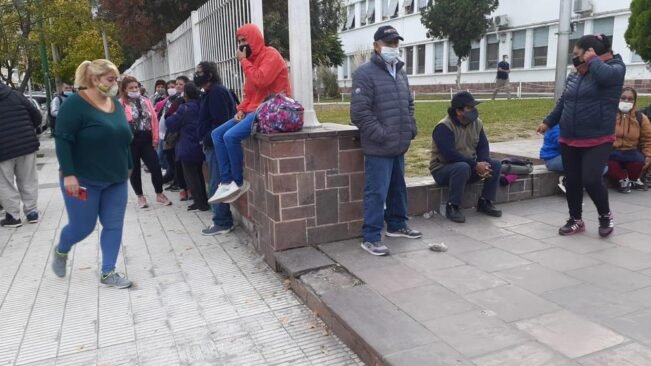 Salteños hicieron filas hoy en desde las 4 de la mañana en busca de un turno y encontraron un cartel que indica que recién se entregarán a partir de las 11 de la mañana y no a las 6 como se hacía hasta hace unos días.