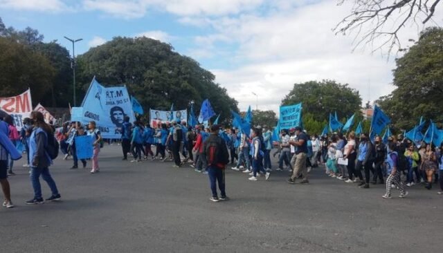 Distintas agrupaciones piqueteras llegaron al monumento aprovechando la visita de los gobernadores y piden principalmente la liberación de presos detenidos por protestas en las distintas provincias. Piden especialmente que se libere a los presas y presos de Jujuy, como explicito mensaje al gobernador Gerardo Morales, que está participando de la reunión.