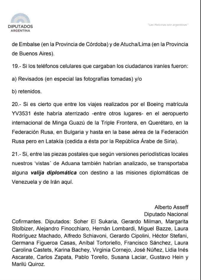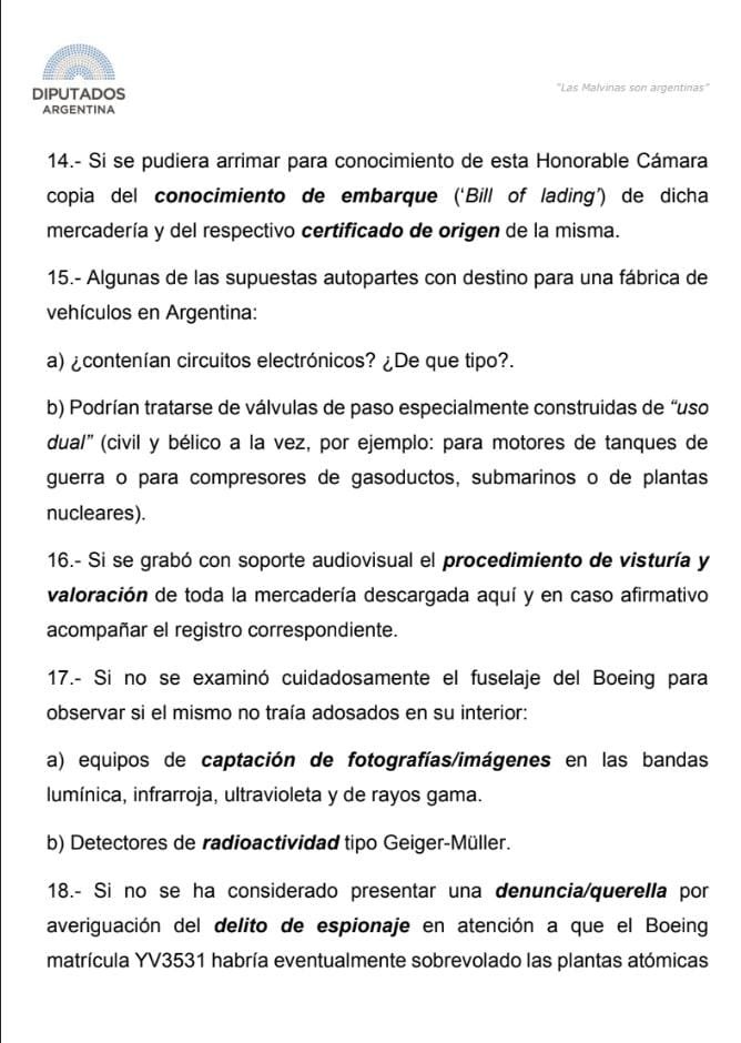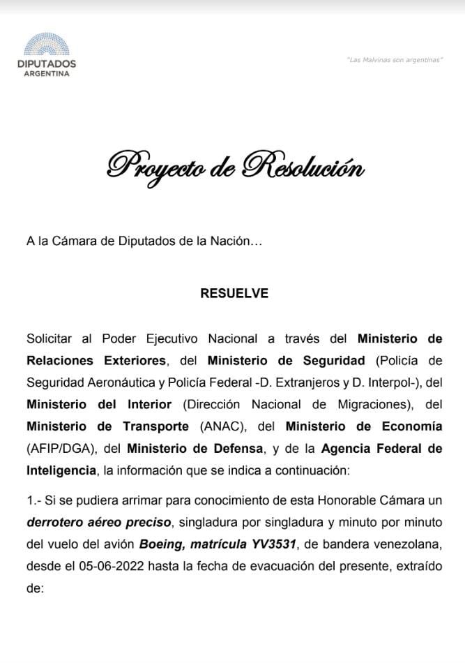 La Cámara de Diputados de la Nación solicitó informes más específicos a los distintos organismos y AFIP acerca del avión venezolano-iraní sospechoso retenido en Ezeiza.