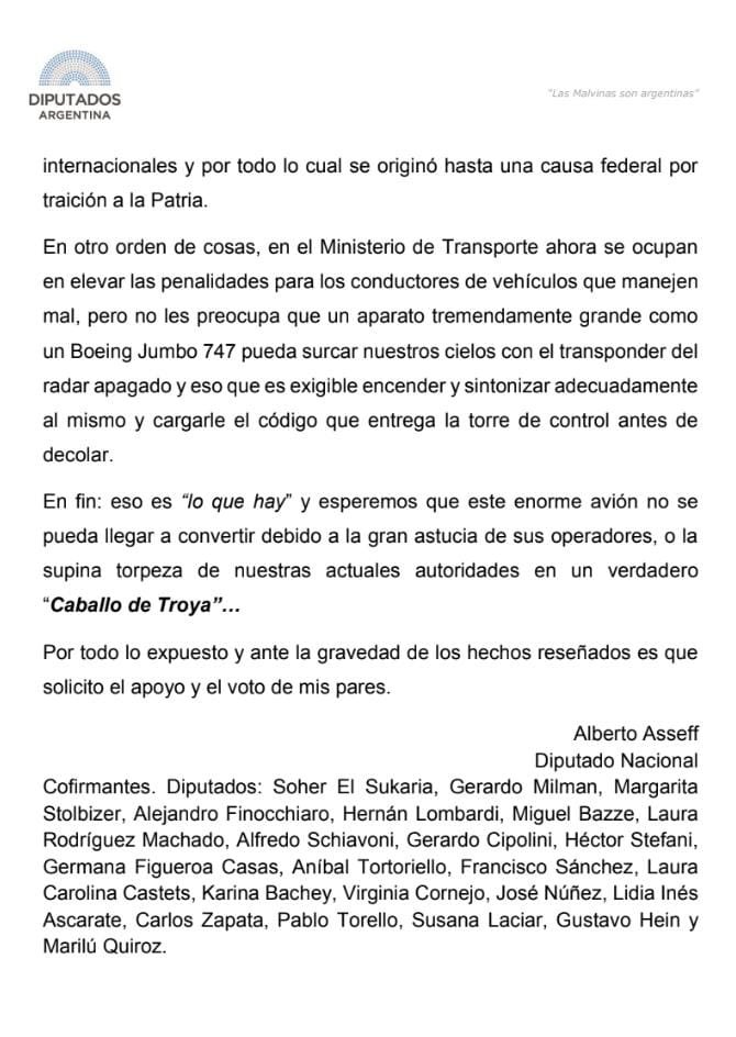 Nacional – Piden detallado informe a los ministerios y a la AFIP sobre el caso cada vez más escandaloso y preocupante del avión venezolano-iraní