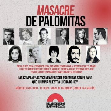 A 46 años queremos recordar a nuestros compañeros y compañeras masacradas en Palomitas evocando la coherencia que guio sus militancias. Ellos practicaron la solidaridad aun cuando fueron privados del bien más preciado, la libertad. Lejos de sucumbir ante la crueldad de sus verdugos, resistieron con dignidad, sin doblegar su voluntad. Jamás perdieron las esperanzas de continuar con la lucha, de lograr alcanzar la meta tan ansiada la igualdad para todos los ciudadanos argentinos y de la patria grande latinoamericana. Todo esto nos debe hacer reflexionar ¿Qué estamos haciendo con nuestro compromiso social y nuestra militancia?¡ Acaso todo lo vivido no fue suficiente enseñanza! ¡Compañeros ni un paso atrás! no podemos retroceder ni detenernos. Ante la insensibilidad de nuestros gobernantes solo podemos redoblar nuestro compromiso y militancia. Organizar los reclamos. Ser contundentes con nuestras denuncias. Nuestros pueblos originarios no pueden seguir postergados más tiempo, allí donde mueren niños y niñas desnutridos, sin acceso al sistema de salud y a redes de agua potable, otros, empresas multinacionales, cada día se enriquecen más y más. Hemos llegado al extremo de judicializar el derecho a la vida, un tribunal de justicia debió obligar, tras un amparo, al gobierno provincial de Gustavo Sáenz, a crear una red de apoyo sanitario, intercultural e interdisciplinario para la niñez de los departamentos de Rivadavia, Orán y San Martin, declarados en emergencia socio sanitaria desde enero de 2020. Sin que las condiciones en el norte de la provincia cambien.