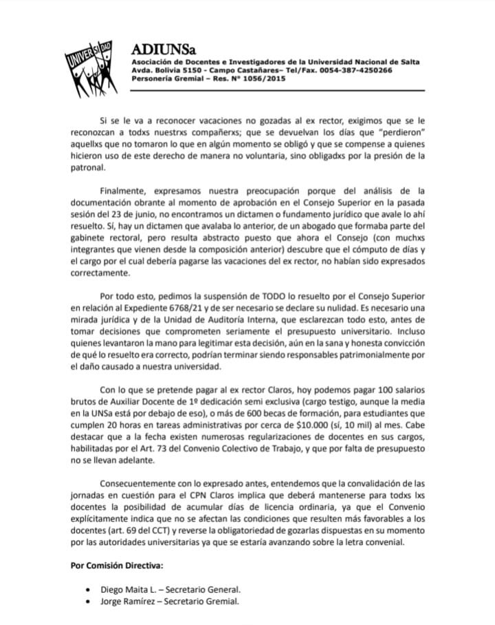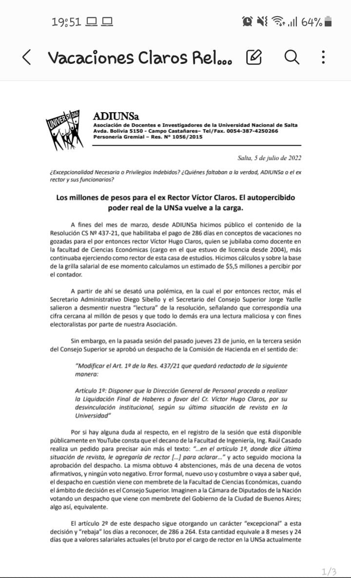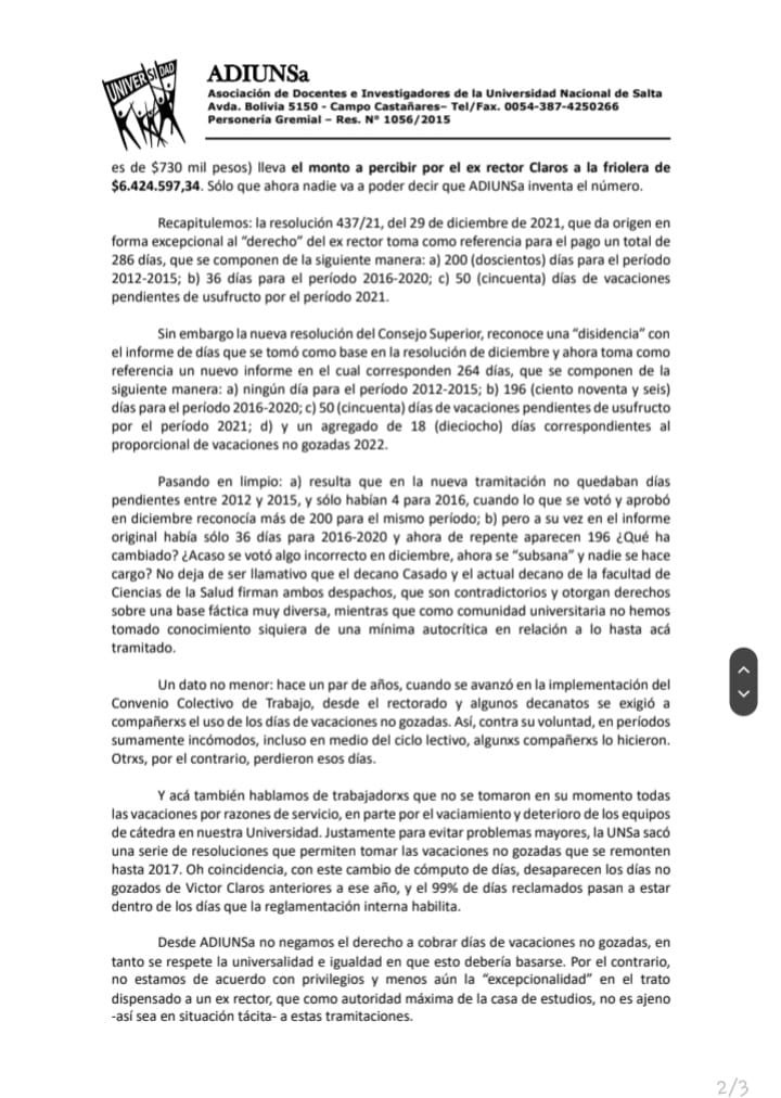 No se si sabían pero el Consejo Superior votó en su última sesión que se le paguen 264 días de vacaciones no gozadas al ex rector de la UNSA.