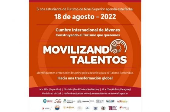 El encuentro se realizará el 18 de agosto de manera virtual. Confirmaron su participación jóvenes de Perú, Chile, Colombia, República Dominicana, México, Ecuador y Paraguay. La Cumbre es gratuita y la inscripción puede realizarse en www.jovenestalentos.turismosalta.gov.ar