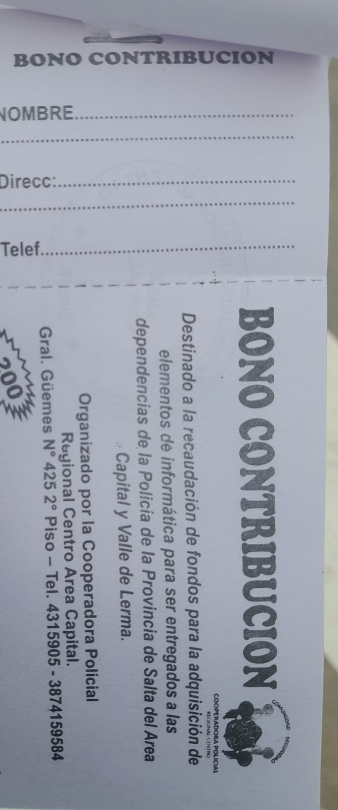 Salta – ¿Obligan a la Policía de Salta a vender bonos contribución truchos?