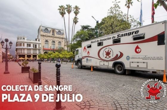 El Centro Regional de Hemoterapia (CRH) ha programado una jornada para promover la donación habitual y colectar sangre de cualquier grupo y factor en la plaza 9 de Julio de la ciudad de Salta.