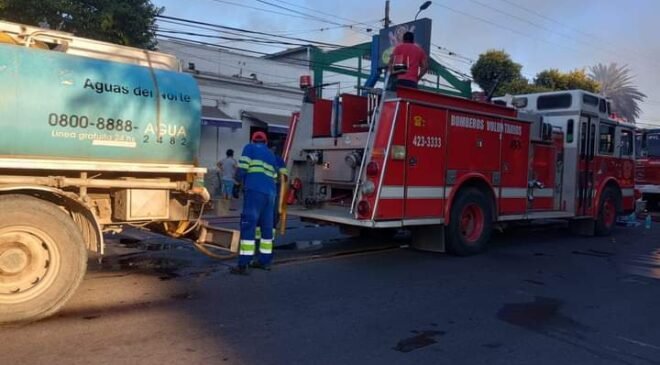 Se desató un voraz incendio en un local comercial ubicado frente a la plaza principal Serapio Gallegos. en el centro del municipio de San José de Cerrillos.