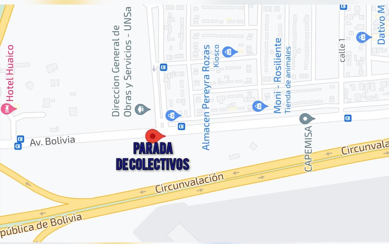 Quedarán habilitadas la paradas anterior (frente al Hotel Huaico) y la posterior (frente al ingreso al barrio P. Rozas primeras etapas.