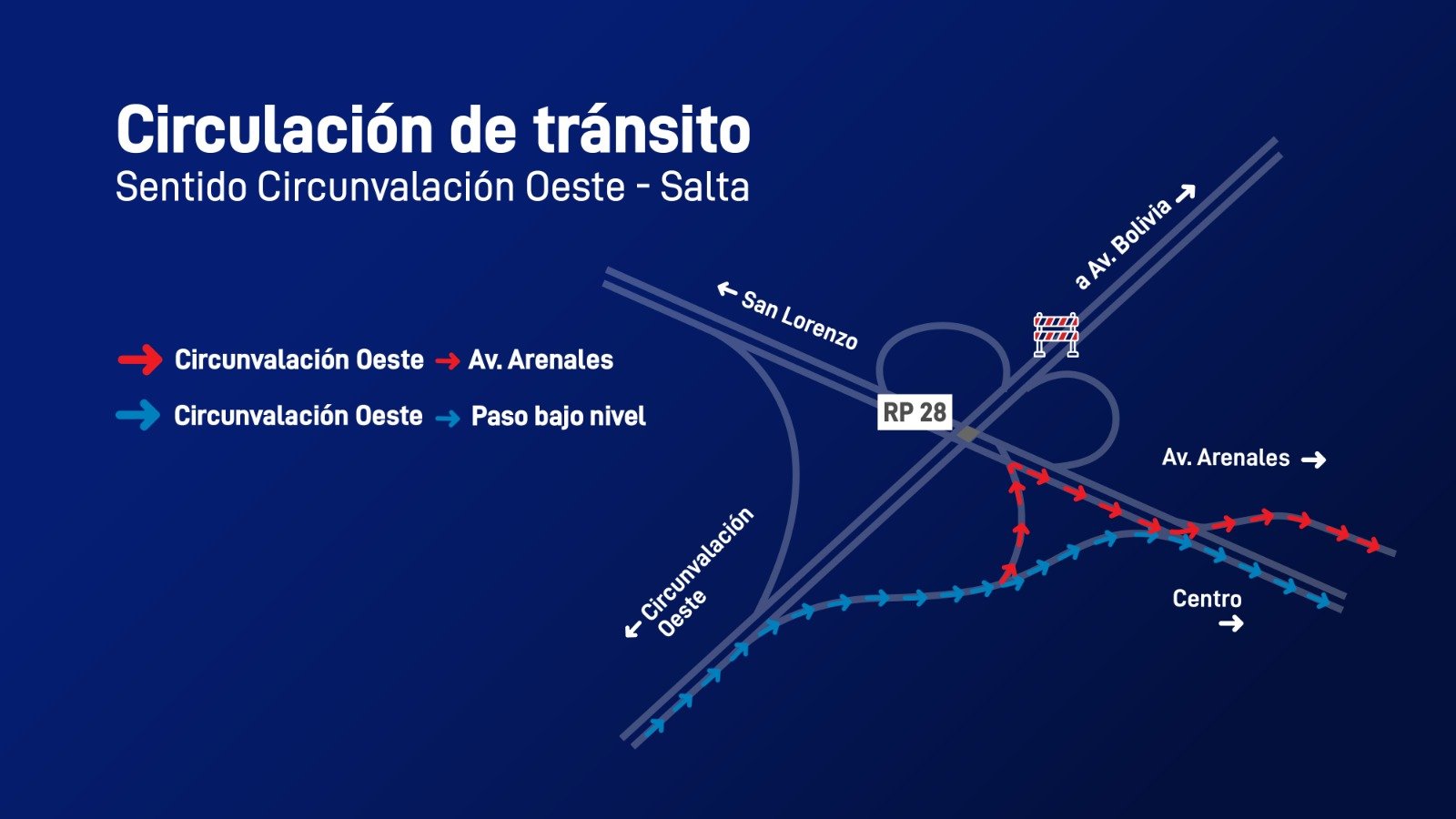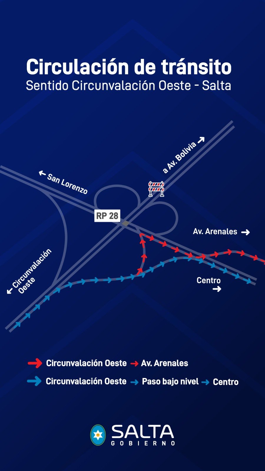 La Dirección de Vialidad de Salta informa que instaló cartelería vial para optimizar la circulación vehicular en sentido circunvalación oeste – Salta, en el empalme con la ruta provincial 28. Se solicita a los conductores respetar las indicaciones para evitar accidentes.