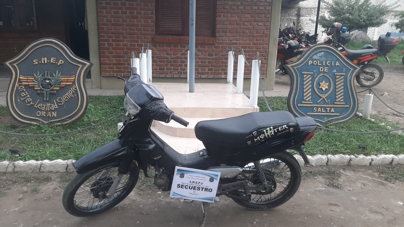 Ayer, alrededor de las 16, efectivos de la Sección Motoristas de Emergencia de Orán, cuando realizaban control de motovehículos en cercanías del Parque de la Familia de esa localidad, verificaron una motocicleta 110 cilindradas que era conducida por dos jóvenes.