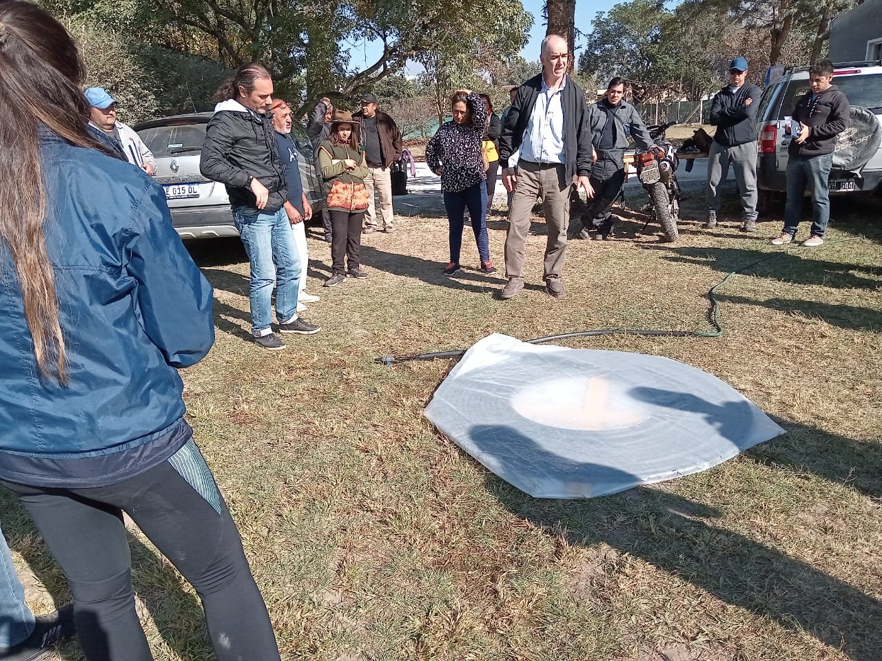 Durante 4 horas, el profesor Dr. Marcelo Gea, profesional de la Facultad de Ciencias Exactas – Universidad Nacional de Salta explicó que la construcción del equipo es sencilla, porque se utiliza materiales resistentes al viento y a la radiación UV, como manguera negra, plástico de invernaderos, etc.