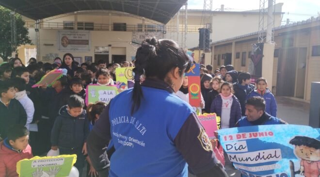En esta ocasión, en la Esc. N 8.083 Dr. Raul Goytia se desarrolló una charla preventiva sobre el trabajo infantil y Derechos de la Niñez, haciendo resaltar el Derecho a la Protección por parte de los adultos y la Policía de la Provincia.