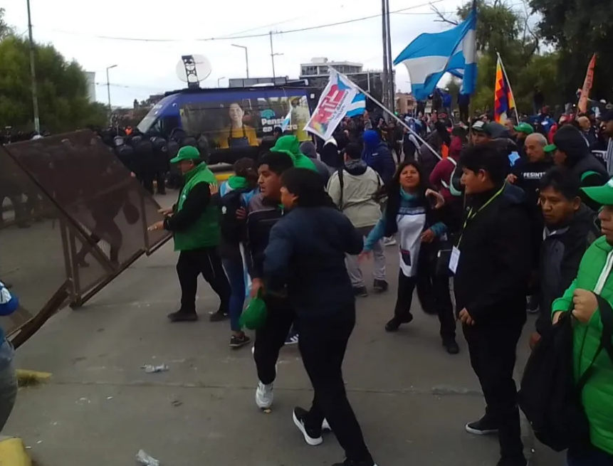 Mientras puertas adentro de la Casa de Piedra se juraba la nueva Constitución de Jujuy, a las afueras se produjeron serios problemas entre manifestantes y la policía. Tras el avance sobre los vallados, tiraron gases lacrimógenos y balas de gomas en una verdadera batalla campal.