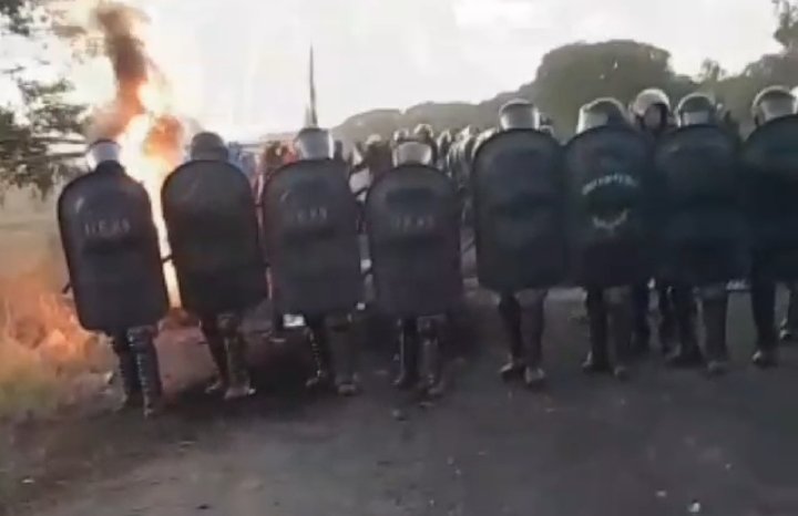 Hasta el momento, la fuerza se encuentran amedrentando a los manifestantes que no han abandonado el lugar