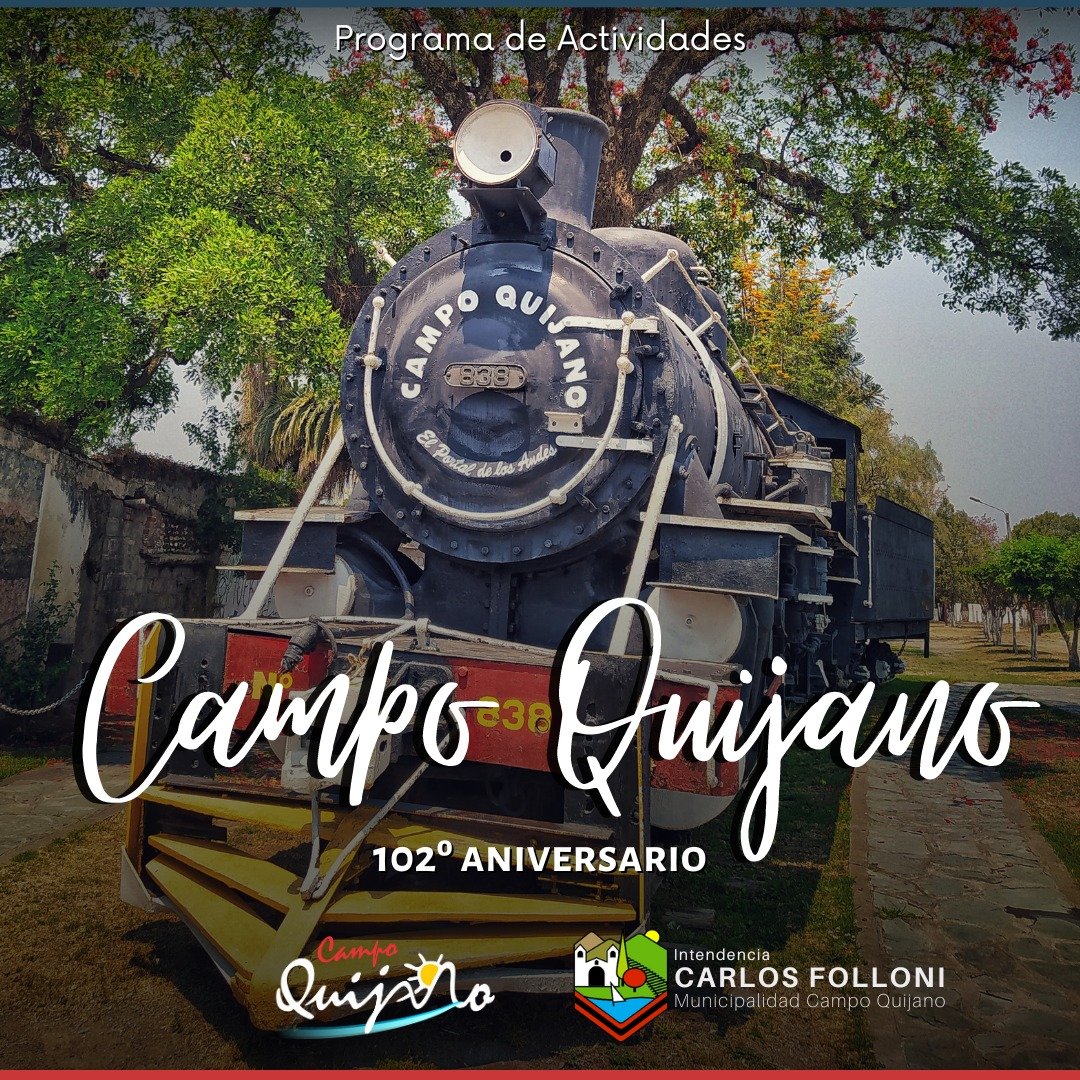 El intendente Carlos Folloni invita a todos los vecinos a participar de los festejos en conmemoración del 102º años de la fundación de Campo Quijano y del 207º aniversario de la Independencia Nacional Argentina. Para celebrar nuestro aniversario se coordinó un calendario de actividades junto a instituciones locales para todo el mes de julio.