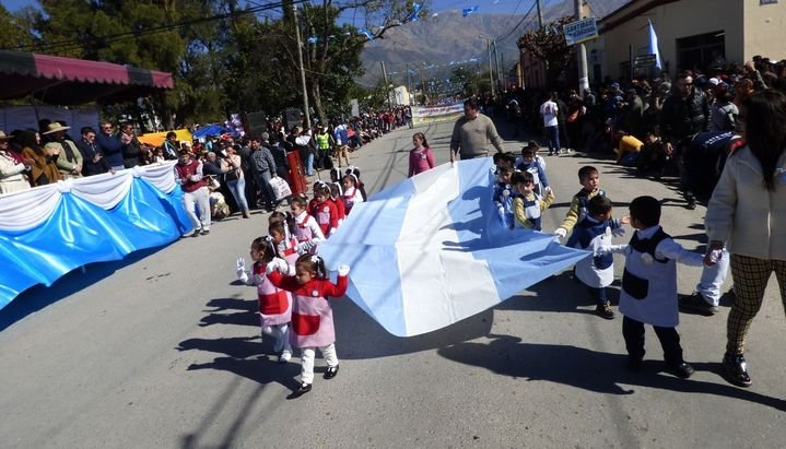 El 9 de Julio, la avenida principal se tiñe de celeste y blanco por el tradicional desfile de las Instituciones del pueblo y los gauchos que le darán el tinte especial con los ponchos salteños.
