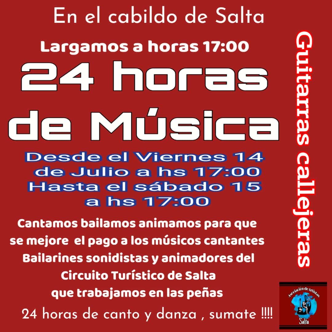 Este viermes a partir de las 17 hs se realizara una manifestacion cultural que será hasta el sábado 15 a las 17 para visibilizar el poco pago en el Circuito turístico de Salta.
