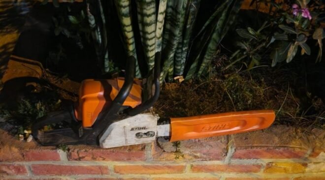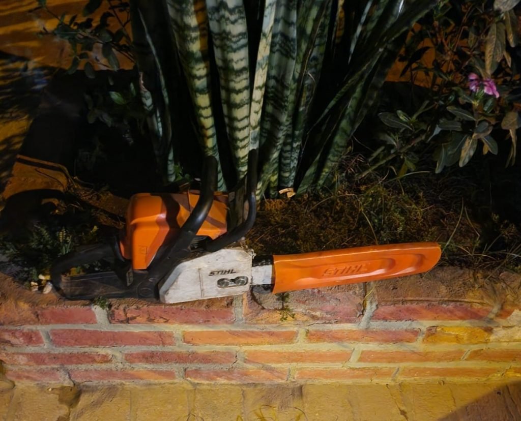 Constatando que la motosierra había sido oculta en un cantero en inmediaciones al lugar de la demora, los uniformados procedieron al secuestro de la misma.