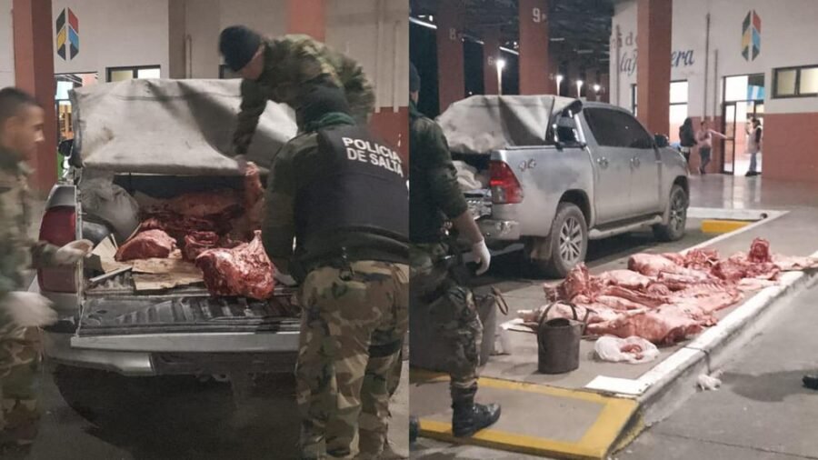 Efectivos de la División Policía Rural y Ambiental realizaban un control vehicular sobre ruta provincial N°25, altura de la Escuela San Martín, y fiscalizaron a los ocupantes de una camioneta, en la que detectaron que transportaban en la caja alrededor de 250 kilogramos de carne porcina sin las medidas sanitarias mínimas.