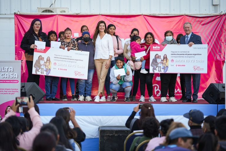 La Intendenta junto al vicegobernador, Antonio Marroco, entregó los vouchers a más de 700 beneficiarias del programa “Salta es tu Casa”. “En el difícil contexto de crisis económica que vivimos, seguimos acompañando a las mujeres, en este caso aquellas que necesitan mejorar su hogar y así la calidad de vida de su familia”, destacó la mandataria.