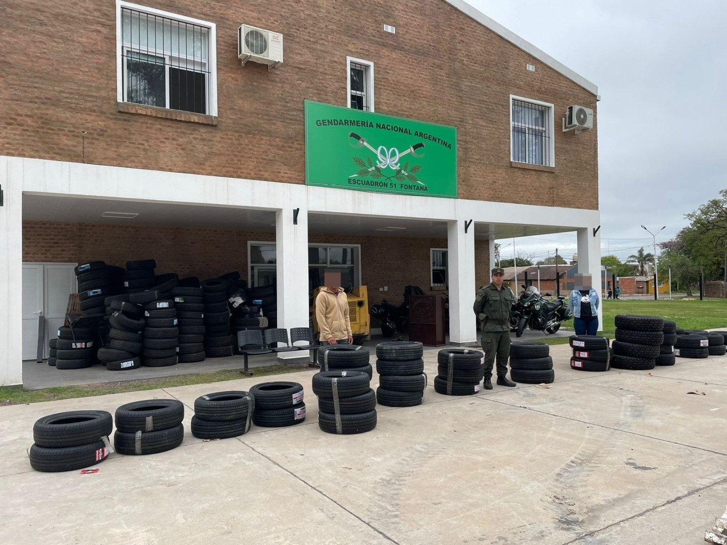 Como resultado de la inspección, se hallaron 48 cubiertas de diferentes marcas, modelos y rodados de origen extranjero que no contaban con el correspondiente aval que garantice su legal origen y traslado.