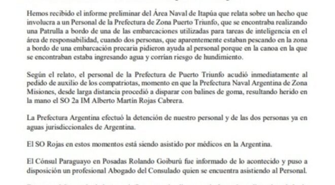 En tanto, el Comando de la Armada paraguaya emitió un comunicado dando su versión de los hechos. Este es su texto completo: