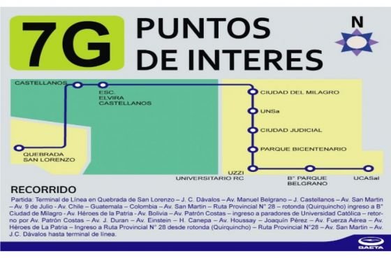 Desde el próximo lunes 2 de octubre SAETA inaugurará su nueva línea 7G que, operada por la empresa Alto Molino, unirá el municipio San Lorenzo, por Lesser, con Ciudad Judicial y las Universidades Nacional y Católica de Salta.