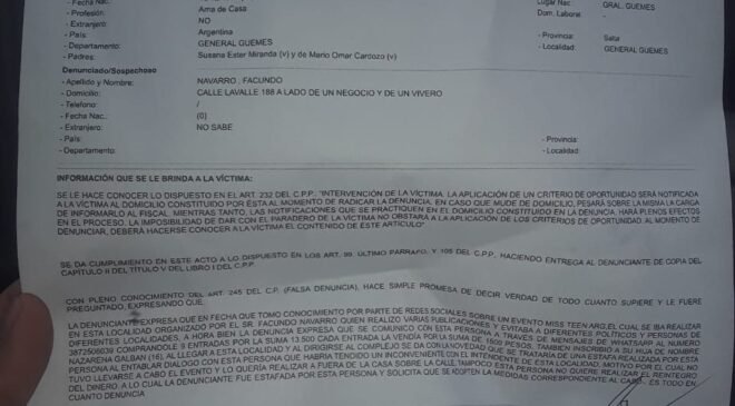 Un grupo de adolescentes fueron estafadas al participar en un concurso de belleza llamado Miss Teen Salta, concurso que prometía ser un deslumbrante evento de belleza para adolescentes y terminó siendo un triste engaño para las participantes y sus familias. Facundo Navarro, el organizador, dejó a padres y madres perplejos y enfurecidos cuando trasladó el certamen que debía realizarse en el Polideportivo Municipal, al modesto comedor de su casa, desestimando por completo las expectativas de las jóvenes concursantes.
