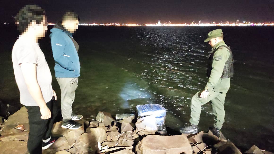 Hoy, en horas de la madrugada, los efectivos del Escuadrón 50 “Posadas” mientras patrullaban por la zona de la costanera de la ciudad de Posadas, observaron que se arrojaron varios bultos hacia la superficie desde una moto a de agua.