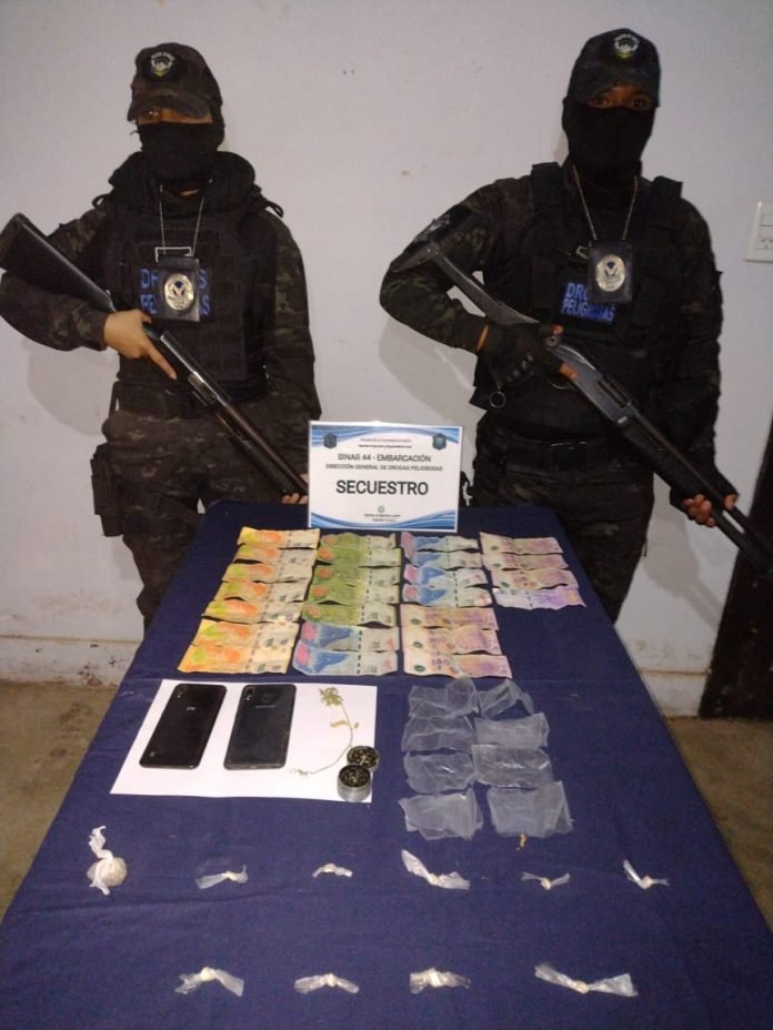 investigativas y la orden judicial, personal de Drogas irrumpió la vivienda investigada por la comercialización de estupefaciente teniendo como resultado la detención de los investigados y el secuestro de varias dosis de cocaína, una planta de marihuana, dos teléfonos celulares, más de 10 mil pesos en efectivo y otros elementos de interés para la causa.