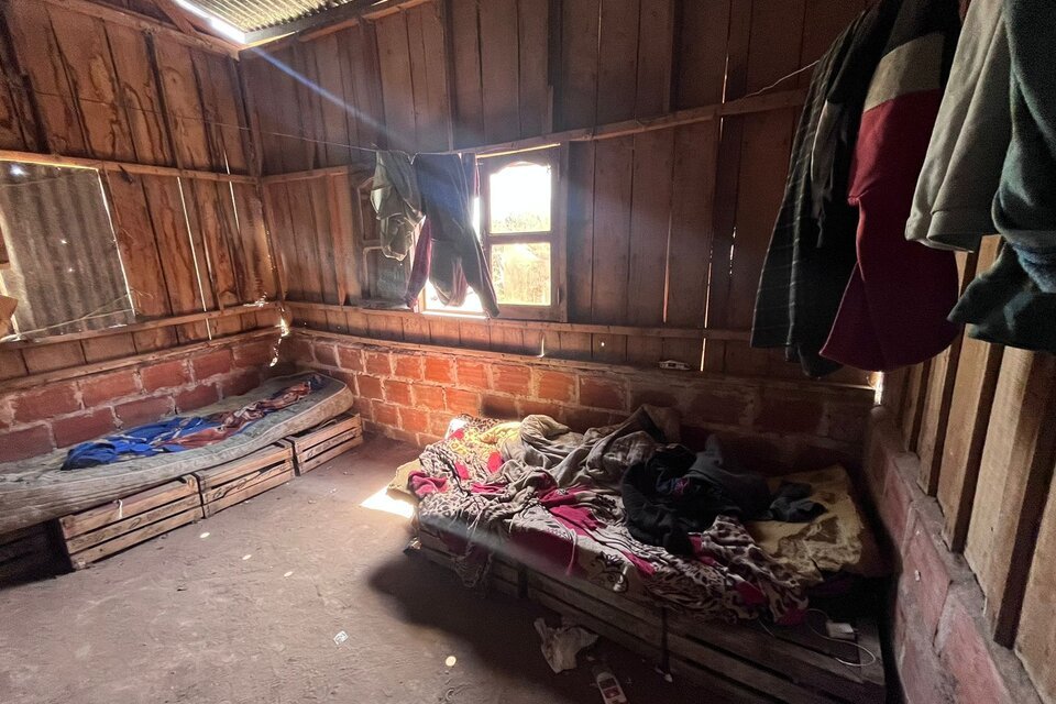 En el otro campo, en el sur salteño, las personas relevadas trabajaban de lunes a sábados durante “extensas jornadas”. Los agentes de la DGSESO constataron condiciones de hacinamiento en la pequeña vivienda provista por los empleadores. Pernoctaban en colchones en el suelo apoyados sobre una base de cajones de madera.