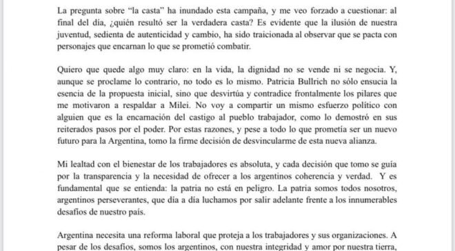 SE TERMINÓ EL AMOR: BARRIONUEVO, SE ALEJA DE MILEI 27 octubre, 2023 En realidad no le dio los fiscales que le pidió y le dijo que ni ah le daba la cartera de Trabajo . El comunicado en que Luis Barrionuevo que anuncia que le retira su apoyo a Javier Milei: